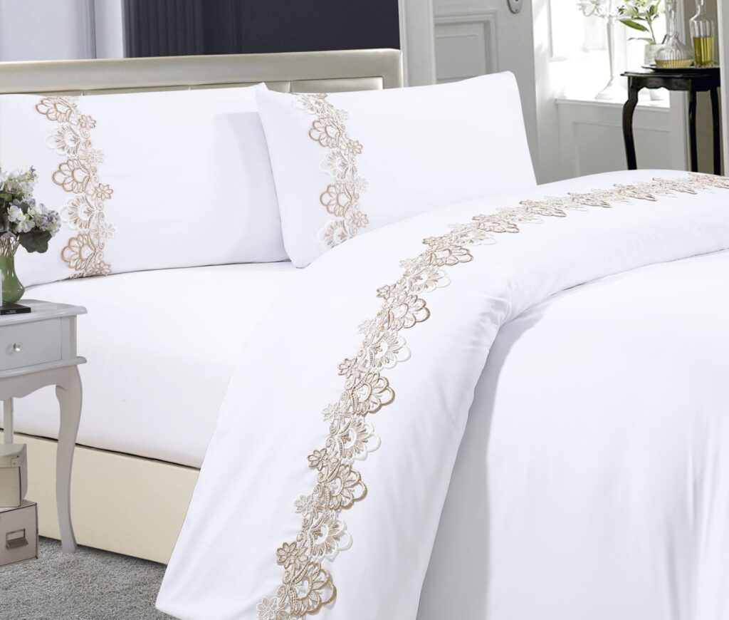 מערכת מצעים יוקרתית 4 חלקים מ-100% כותנה בתוספת תחרה