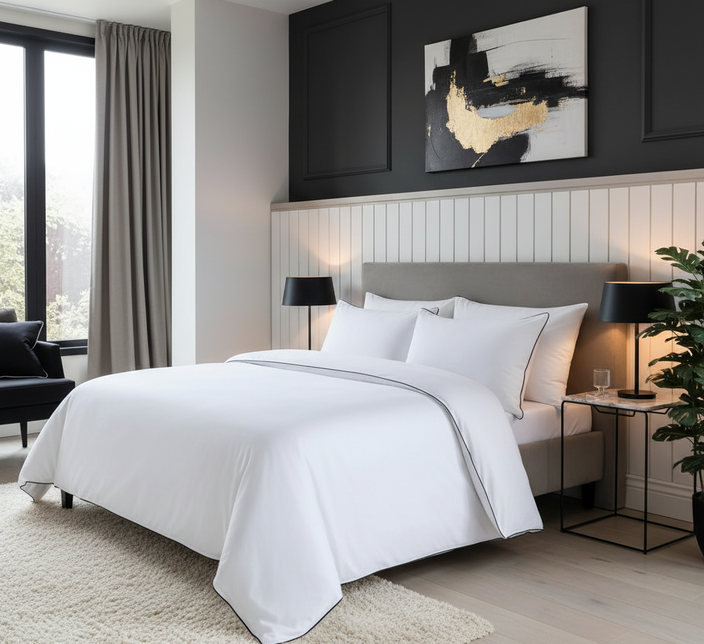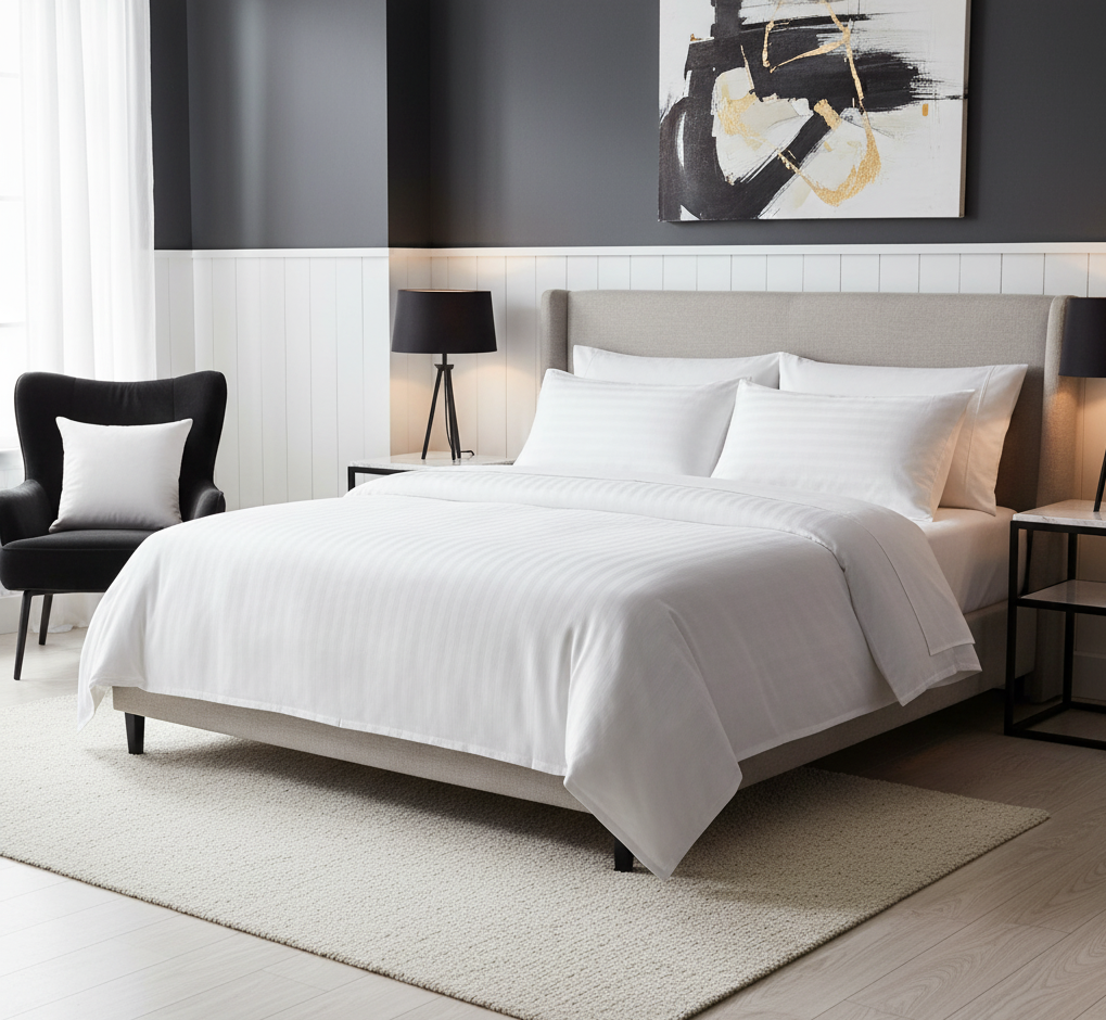 מערכת מצעים 4 חלקים בצבע לבן עם פס דקורטיבי